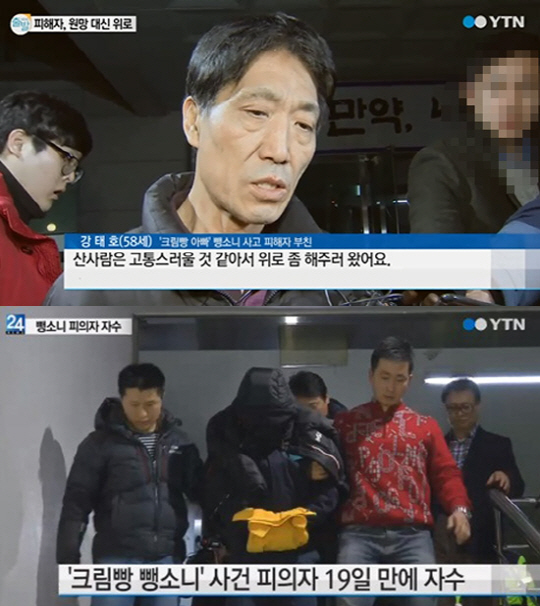 특히 크림빵 뺑소니 용의자 자수 소식에 피해자 강모씨 아버지 강태호(58)씨는 자신의 아들을 사망케 한 피의자를 향해 "가족이 너무나 고마워했다"고 말하며 분노나 원망하는 모습 대신 용서의 손을 건네 보는 이들을 뭉클하게 만들었다.