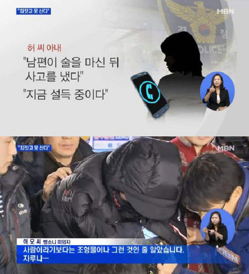 또한 허씨는 '왜 도주했느냐'는 기자들의 질문에 "죄 짓고 못 산다. 사람인지 인지하지 못했다. 사람이라기보다 조형물이나 자루인 줄 알았다"고 주장했다.