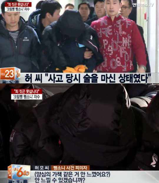 허씨는 자수 이유를 묻는 취재진 질문에 "죄 짓고 못 산다"고 말했다. 이어 "양심의 가책을 느끼지 않았나"는 질문에는 "양심의 가책을 안 느낄 수 있었겠나"고 답했다.