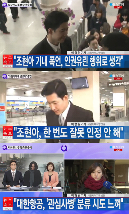 이날 공판에는 박창진 대한항공 사무장이 증인으로 출석해 "조현아 전 부사장이 나를 폭행했고, 기내 서비스를 맡은 여직원을 손으로 밀치고 무릎을 꿇게 하고 폭언을 했다"고 주장했다.