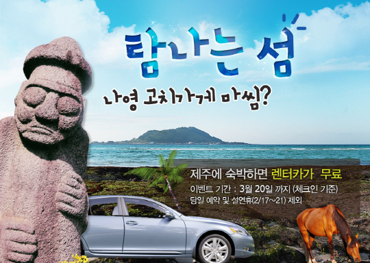 다만 당일 예약과 설 연휴(2월 17일~21일)는 이번 프로모션에서 제외되며, 렌터카 추가 이용 시에는 추가비용이 발생한다.