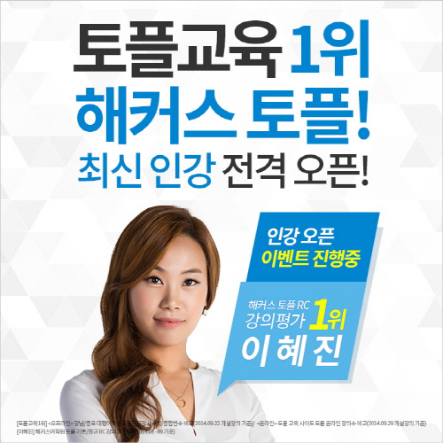 이와 함께 모든 토플인강을 자유롭게 수강할 수 있는 '토플 프리패스' 이벤트도 진행 중이다. 레벨/영역별로 세분화된 커리큘럼의 프리패스를 통해 기본부터 실전까지 모든 최신 명품인강을 최저 월 3만원대 가격으로 수강할 수 있다. 해커스 토플 대표강사들이 직접 시험을 보고 기출 유형 분석을 설명해준 강의가 매달 업데이트 돼 반복 출제되는 최신 출제경향 파악도 가능하다. 신청자 전원에게는 ▲모바일/PC/PMP 무료다운 쿠폰 ▲결제금액 10% 포인트 적립 ▲토플 해설인강 무료 수강 ▲토플 온라인 모의고사 50% 할인쿠폰 등 다양한 혜택을 제공한다.