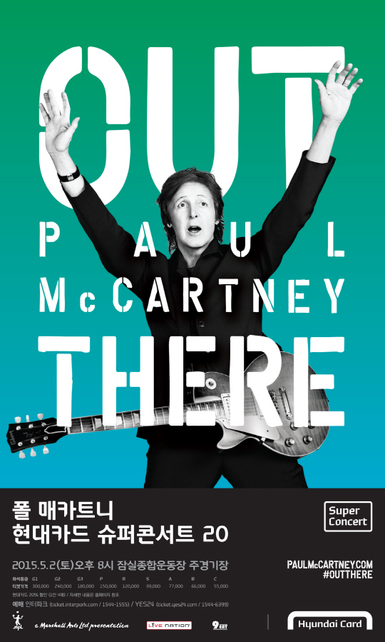 <현대카드 슈퍼콘서트 20 폴 매카트니(Paul McCartney)>는 2013년 브라질을 시작으로 18개월 동안 북미와 남미, 유럽 12개 나라에서 성황리에 펼쳐졌던 'Out There' 투어의 일환이다. 이 월드투어에서 폴 매카트니는 비틀즈와 윙스 시절의 히트곡부터 최신 앨범 [New] 수록 곡까지 다양한 곡들을 선보였고, 200만 명(총 64회)에 달하는 관객들이 공연의 감동을 나누었다. 이번 슈퍼콘서트 역시 폴 매카트니의 50년 음악 일대기를 한 곳에서 경험할 수 있는 국내 최초이자, 최고의 기회가 될 것으로 보인다.