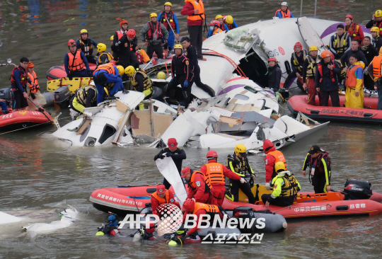 이날 오전 10시45분(현지시간) 타이베이에서 진먼으로 향하려던 여객기는 오전 10시55분쯤 타이베이시 송산공항 인근 고가도로 상단을 들이받고 지룽천으로 추락했다.