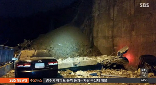 이에 옹벽 바로 아래 주차된 차량 30∼40대가 매몰된 것으로 알려졌다. 이 가운데 10여대는 콘크리트와 토사에 매몰됐고 나머지는 토사가 덮치면서 파손된 것으로 알려졌다.