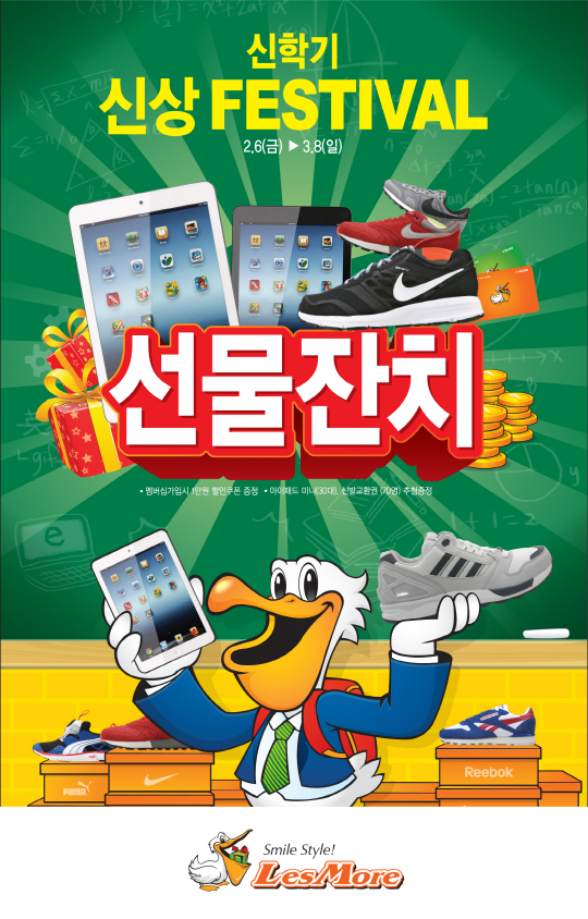 국가대표 슈즈 멀티숍 레스모아가 3월 8일까지 신학기 신상 페스티벌을 실시한다.