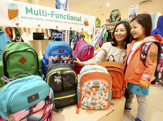 '멀티 패턴 백팩'은 북유럽 패턴과 컬러 블록으로 유니크한 느낌을 주는 디자인이 특징으로 가방 내부에 충분한 수납 공간을 확보했다. 야외 활동을 대비해 보냉 기능이 가능한 물통 주머니가 있으며, 아이의 안전을 고려한 3M 스카치라이트를 사용했으며 컬러는 네이비와 핑크로 구성했다. 두 가방 모두 뒷면을 엠보싱 처리해 성장기 아이들의 척추를 보호하며, 어깨끈 흘러내림 방지 버클로 편안한 착용감을 준다.