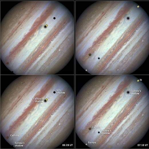 이는 관측 시점에서 행성 위에 그 위성 3개가 들어선 모습으로, 10년에 한번 볼까말까 할 만큼 아주 보기드문 희귀 현상이다.