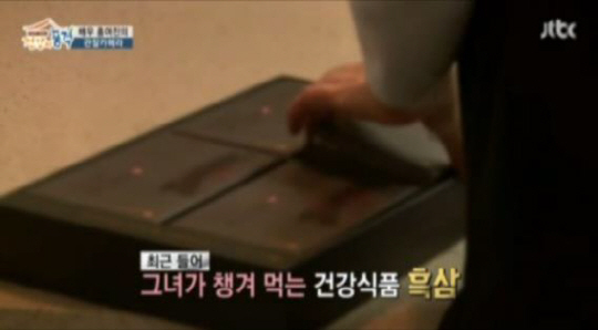 지난 8일 아침 방송된 JTBC '건강의 품격'에서 홍삼의 특이 사포닌 성분 Rg3가 홍삼 보다 9배 더 많은 구증구포 흑삼의 효능이 소개돼 화재다. '건강의 품격'은 이날 방송에서 유방암 수술 후 더욱 건강 관리에 신경 쓴다는 한 중견 여성 탤런트의 식습관을 다뤘다. 출연 여성은 유방암 수술 후 상추를 챙겨먹는다고 전했다. 상추는 비타민 A가 풍부하고 비타민 B1과 철분, 칼슘 등 미네랄이 많이 들어 있으며 리신, 티로신 등 필수 아미노산도 풍부해 빈혈, 골다공증 예방 등에 좋아 전문가들은 중년 여성들이라면 평소 꾸준히 챙겨 먹을 필요가 있고 유방암 치료에 도움이 된다고 전했다. 또한 중년 여성은 상추와 함께 암 수술 후 면역력 강화와 항암 효과를 기대하며 선물받은 흑삼을 꼬박 꼬박 챙겨 먹는다고 밝혔고, 전문가들은 좋은 식습관이라고 평가해 시청자들의 주목을 받았다.