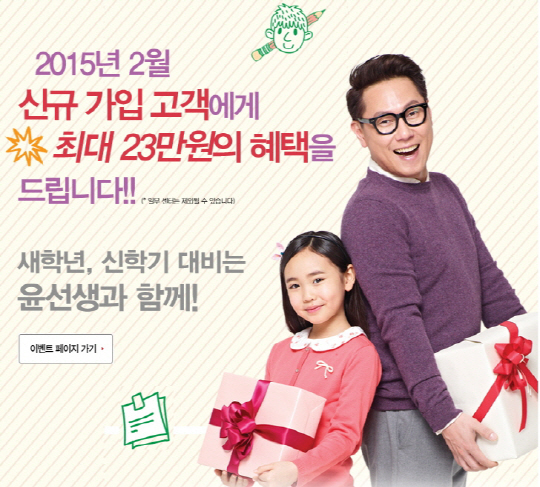 영어교육 전문기업 윤선생(www.yoons.com)이 2월 중 가입하는 신규 회원에게 최대 23만원의 장학금 혜택을 제공한다.