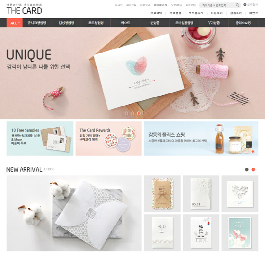 ㈜비핸즈카드(구 바른손카드, 대표 박정식)가 9일 유니크 감성 청첩장 브랜드 '더카드'의 웹사이트(www.thecard.co.kr)를 전면적으로 리뉴얼했다.