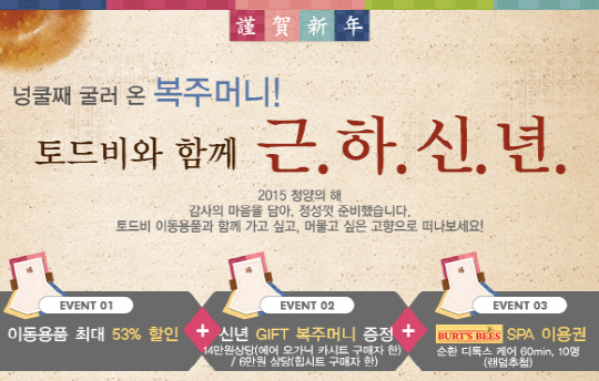 토드비 사업총괄 담당 한문철 이사는 "2015년 근하신년을 맞이해 소비자들에게 새해 감사인사를 전하기 위해 이번 이벤트를 진행하게 됐다"며 "올 한해도 엄마들의 행복한 육아를 응원하고 지원하는 브랜드로서 다양한 마케팅과 프로모션을 진행해 나갈 것"이라고 말했다.