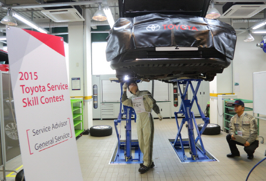 토요타 브랜드는 2월 6일부터 7일까지 양일간 토요타 트레이닝 센터(성수동 소재)에서 '2015 토요타 기술 경진대회'를 개최했다. 사진은 일반정비 부문 대회 모습.