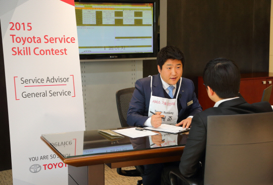 토요타 브랜드는 2월 6일부터 7일까지 양일간 토요타 트레이닝 센터(성수동 소재)에서 '2015 토요타 기술 경진대회'를 개최했다. 사진은 서비스 어드바이저 부문 경합 대회 모습.