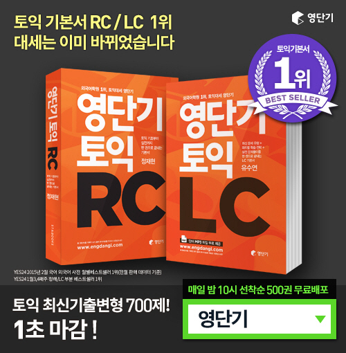 <영단기 토익 RC> 구매자 전원에게는 최신 토익 실전 모의고사와 200% 환급반 출석 1회 부활권을, <영단기 토익LC> 구매자 전원에게는 750달성의 길을 열어주는 완벽 훈련서 '영단기 토익 스터디북' 등을 모두 무료로 제공한다.