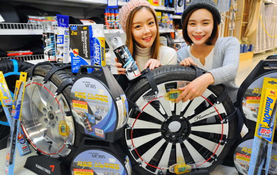 12일부터 20일까지 전국 140개 점포에서 귀성길 장거리 운전 관련 용품 110여 종을 최대 50% 할인 판매한다. 차량용 핸드폰 거치대는 50% 할인해 1만4900원에, 뒷자석용 거치대 역시 50% 할인해 1만9900원에 선보인다. 귀성길 눈이나 비가 올 경우를 대비해 성에 제거기를 1500원부터, 스프레이 체인을 3600원부터, 장착용 체인을 4만3000원부터 판매한다.