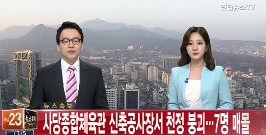 소방당국에 따르면 레미콘 작업 중 천장 일부가 무너지면서 작업자 7명이 매몰됐고 부상 정도는 아직 파악되지 않았다. <스포츠조선닷컴>