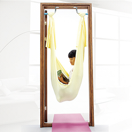 플라잉 요가를 체험하려면 가까운 학원을 찾아야 했지만 무언가 한 가지 시작하려면 만만찮은 비용과 수업시간 엄수에 대한 부담 등 여러 가지 제약이 따르기 마련이다. 최근 손쉽게 가정에 설치하여 언제든지 해먹에 내 몸을 맡길 수 있는 하우스 공중부양 시스템이 등장했다.