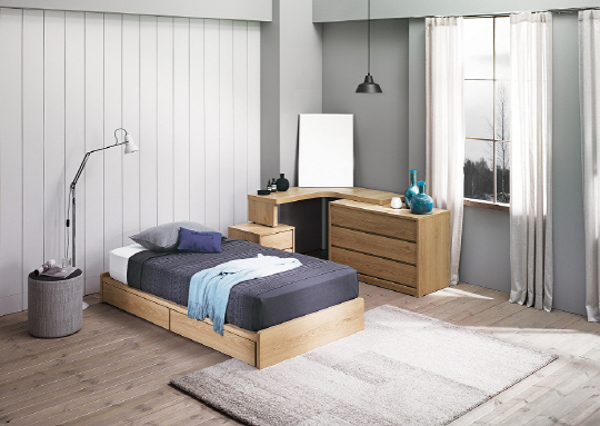 아울러, F3124H 모델은 침대 헤드보드와 협탁의 구성이 독창적이다. 낮은 마루형 바디에 군더더기 없이 심플한 헤드보드로 구성되었으며, 특히, 거울이 달린 협탁은 수납은 물론 작은 화장대 기능까지 겸해 최소한의 공간에서 최대한의 실용성을 경험할 수 있는 제품이다.