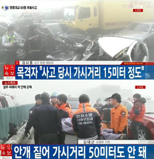 영종대교 106중 추돌사고 목격자 "차가 파도에 밀려오 듯"