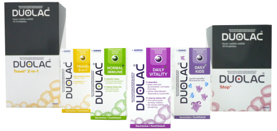 최근 덴마크에서의 성공에 힘입어 핀란드 시장에 선보인 제품은 '비타푸드 2014 박람회(Vitafoods 2014 Europe)'의 '신제품존(New Products Zone)'에 소개되며 주목받은 '듀오락 데일리 바이탈리티(DUOLAC Daily Vitality)'가 대표적이다. 이 제품은 국내에서 판매되는 '듀오락 골드', '듀오락 케어'와 동일한 균주로 조성, 비타민 C 성분이 추가된 제품이다. 이와 함께 여행용 물갈이에 맞춤 설계된 '듀오락 스탑(DUOLAC Stop)', 항생제 처방 후 장내 면역개선을 위한 '듀오락 리빌트 이뮨(DUOLAC Rebuilt Immune)', 여행 전용제품인 '듀오락 트래블(DUOLAC Travel 2 in 1)', 어린이 장환경에 맞춘 '듀오락 밸런스 키즈(DUOLAC Balance kid)'를 선보인다.
