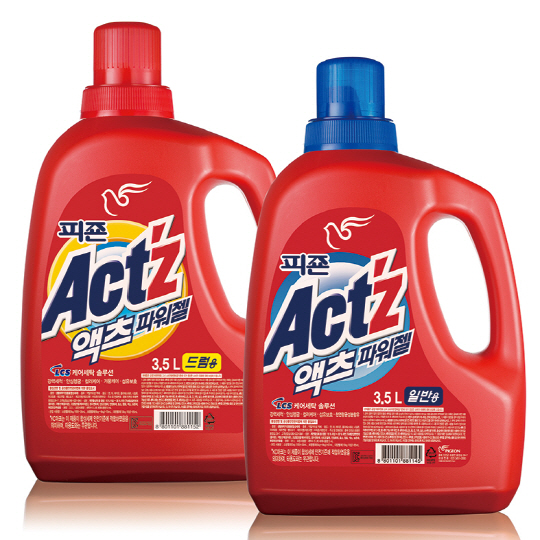 '피죤 액츠 파워젤'은 2005년에 출시돼, 국내에 액체세제 시장을 새롭게 연 제품으로 자몽, 유자, 유칼립투스가 함유된 천연자연성분 추출물을 함유하고 있다. 세탁 후에도 세제 찌꺼기가 남지 않아 피부에 자극이 적고 피죤만의 LCS솔루션(Liquid Cleansing Solution)으로 강력한 세척력과 컬러케어 기능이 특징이다. 찬물에도 100% 녹는 액체 타입이기 때문에 온수 사용이 필요 없어 에너지 절약을 통한 탄소배출량 감소 효과를 거둘 수 있는 경제적인 제품이다. 출시 당시 국내 생활용품 시장에서 큰 반향을 일으킨 이 제품은 현재 액체세제 원조 격으로 통하며 대한민국 대표 세제로 자리매김 했다.