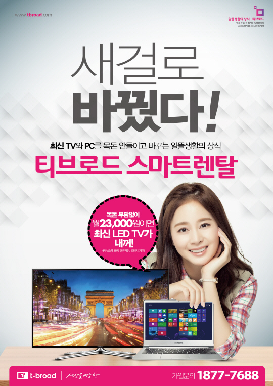 티브로드(대표 심재혁)가 16일 최신 TV와 노트북, PC를 합리적인 가격으로 제공하는 '스마트렌탈' 상품을 출시한다고 밝혔다.