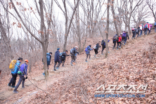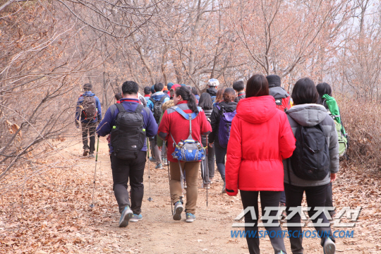 지난해 6월 시작한 '2014 노스페이스 다이나믹 하이킹'의 마지막 행선지는 경기 파주시에 위치한 심학산이었다. 사실 지난 1월에 끝냈어야 하지만 노스페이스가 후원하는 '2015 청송 아이스 클라이밍 월드컵'이 지난달 열리면서 한 달 연기됐다.
