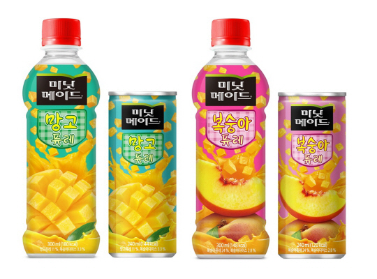 코카-콜라사의 세계적인 주스 브랜드 미닛메이드는 지난달 말 진한 망고, 복숭아 퓨레에 진짜 과육이 들어있어 씹는 즐거움을 주는 신제품 '미닛메이드 망고 퓨레'와 '미닛메이드 복숭아 퓨레' 2종을 새롭게 선보였다. '미닛메이드 망고 퓨레'는 부드러운 망고 퓨레에 진짜 복숭아 과육이, '미닛메이드 복숭아 퓨레'는 상큼한 복숭아 퓨레에 진짜 복숭아 과육이 들어있는 것이 특징이다. 입안 가득 퍼지는 달콤한 과일 향과 진짜 과육을 씹는 즐거움을 동시에 느낄 수 있는 제품이다. 새로운 타입의 음료를 원하는 소비자들을 겨냥해 기분전환이 필요할 때마다 즐길 수 있는 제품을 출시했다는 것이 관계자의 설명이다.