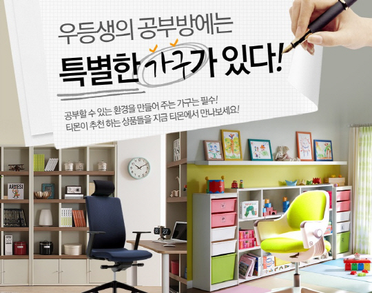 먼저 티몬은 '우등생의 공부방 기획전'을 통해 책상에서부터 의자, 수납장 등 약 100여종의 제품을 최대 61%할인된 가격에 선보인다. 최근 기능성으로 주목 받고 있는 시디즈의 링고의자를 26%할인된 14만5000원에 선보이고, 심플한 디자인과 안정감을 강조한 디자인소울의 철제책상을 1만9900원부터 판매하고 있다. 이 외에도 동서가구의 삼나무 원목책장을 7만6000원, 컬러교구장과 책꽂이를 2만7900원에 판매한다.