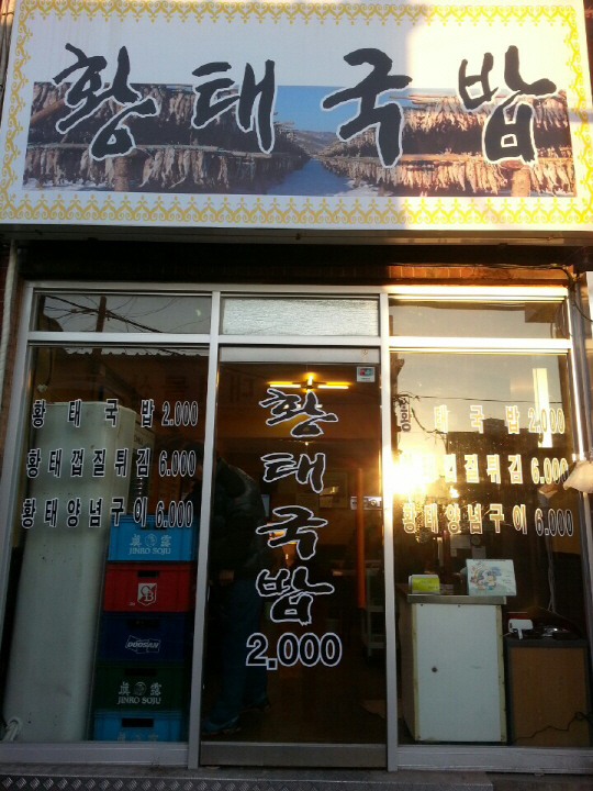 서울 종로구 동묘와 풍물시장 근처에 있는 '황태국밥'집은 눈에 띄지 않는 평범한 외관이지만 인근 동네 주민들과 상인들, 동묘와 풍물시장을 구경나온 사람들에게는 이미 입소문을 타서 유명세를 톡톡히 얻고 있다.