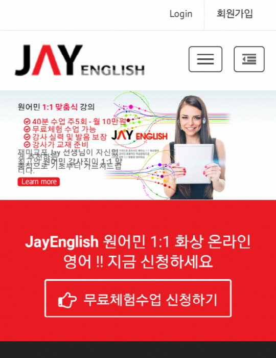 바쁜 직장인의 야근이나 늦잠, 술약속 등 상관없이 주중에 참여하지 못한 때는 주말 보충수업도 가능하다. 1대 1 과외수업같이 최고의 교육효과를 내며 진행되고, 엄격히 관리 되는 원어민 강사들의 퀄리티 높은 문법 및 발음을 통한 강의를 접할 수 있다. 또한 강사들이 수업 중간중간 수강생에게 표현 교정을 해주기도 하며, 수업 후에도 틀린 표현을 수정 해 주는 등 책임감 있는 교육을 선보여 4~5개월 꾸준히 공부하면 말문이 어느 순간 트이게 된다. 슬랭 같은 것이 없는 정확하고 고급스러운 인터내셔널 잉글리시로 영어 상급자들도 마음 놓고 수업을 듣고 실력 향상을 꿈꿀 수 있다. 따라서 교포에게 영어를 배우고 싶은, 저렴한 비용으로 집에서 어학연수를 하고 싶은 사람에게 좋은 기회가 될 수 있다. 특히 유치원 때부터 영어로 교육을 받는 필리핀은, 우리나라에서도 어학연수지 중 하나로 인기 있을 정도인데, 필리핀에서 미국회사직원, 영어 교사 등으로 일한 국제적으로 검증된 강사들과 공부할 수 있는 점도 제이영어의 특장점이다. 송 대표의 열정· 엄정 선발 및 관리되는 강사와 제이영어 교재는 직장인의 비즈니스 영어, 학생들의 생활 영어, 전 연령의 영어 학습과 실력향상에 밑거름이 되게 하고 있다.