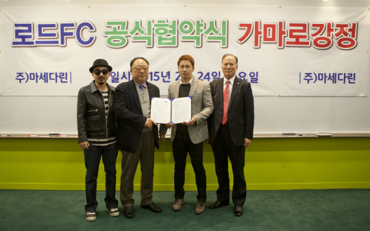 가마로강정으로 잘 알려진 ㈜마세다린(대표 정태환)이 24일 종합격투기 대회인 로드에프씨(ROAD FC, 대표 정문홍)의 공식 스폰서 협약을 체결했다.