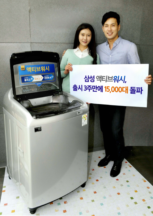 삼성전자 '액티브워시' 세탁기가 출시 3주 만에 국내 판매 1만5000대를 돌파했다. 25일 삼성전자에 따르면 기존 전자동 세탁기 판매 실적 대비 3배를 초과하는 판매량이다. 액티브워시는 세탁기 본체에 개수대와 빨래판을 설치해 애벌빨래부터 탈수까지 한 번에 끝낼 수 있는 신개념 세탁기다. 애벌빨래에 대한 소비자들의 불편함을 분석해 인체공학적 설계를 적용해 허리를 구부리지 않고 서서 애벌빨래를 할 수 있어 소비자들로부터 큰 인기를 끌고 있다.