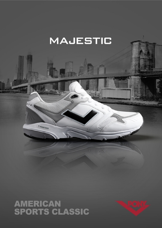 2013년 처음 선보인 마제스틱은 이번 시즌에 심플한 화이트 컬러를 바탕으로 임팩트 있는 쉐브론이 돋보이는 아이템으로 러닝화의 기능에 충실하면서 스타일까지 업그레이드했다. 아웃솔에는 포니의 기술력을 담은 P.RUNTECH(포니 러닝 테크놀로지)을 적용해 쿠셔닝을 극대화 시키고, 내부에 항균과 통풍이 뛰어난 기능성 인솔(오쏠라이트)을 사용해 장시간 착화에도 산뜻한 착용감을 느끼게 했다. 외관은 클래식하고 세련된 스니커즈 스타일로 부드러운 스웨이드와 시원한 메시 소재가 매치되 스포티함과 고급스러움을 더했고, 은근한 키높이 효과가 있어 코디하기에 좋다. 남녀 공용으로 화이트, 골드, 블랙, 블루, 그레이의 5가지 컬러로 출시됐다.