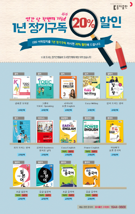 | 동아출판이 EBS방송교재 1년 정기구독 20% 할인행사를 진행한다. |