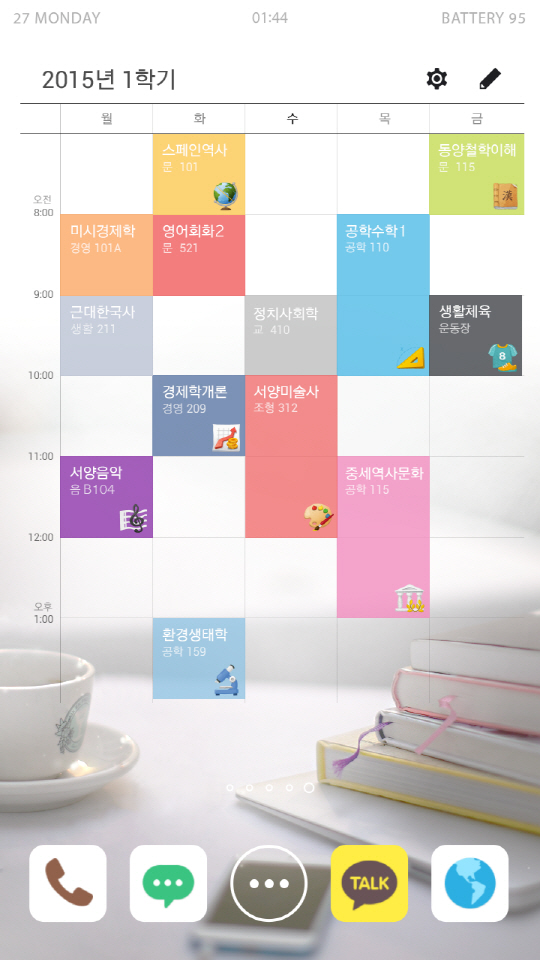쏠캘린더는 스마트폰 홈화면에서 간편하게 수업 시간표와 일정을 확인할 수 있는 '한눈에 보는 시간표' 위젯 기능을 선보였다. 시간표 위젯은 시간표 어플리케이션과 캘린더 어플리케이션을 함께 사용하던 불편함을 줄일 수 있으며 스마트폰 홈화면에서 수업시간과 강의실 정보, 과목별로 할 일, 이후 일정 등을 통합적으로 관리할 수 있다.