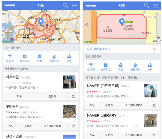 네이버(대표이사 사장 김상헌)가 27일 이용자들이 모바일 웹 지도 서비스에서 위치 정보 뿐 아니라 관련된 지역 정보를 보다 편리하게 확인할 수 있도록 서비스를 강화했다고 밝혔다.
