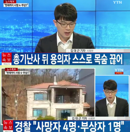 YTN 속보에 따르면 신고를 받고 출동한 관할 파출소 소장을 포함한 4명이 사망하고 1명이 부상을 당했다. 경찰과 대치하던 용의자는 스스로 목숨을 끊었다.