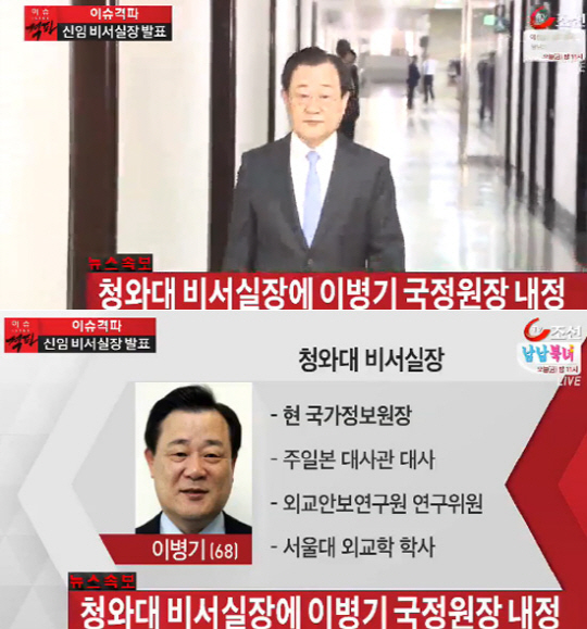 | 靑 비서실장에 이병기 국정원장…국정원장에 이병호 내정 |