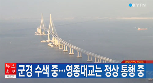 보도에 따르면, 인천공항과 서울쪽을 잇는 영종대교 아래 쪽 갯벌에서 폭탄이 발견됐다. 이에 군과 경찰이 수색을 하고 있으며, 일단 차량들은 정상적으로 통행되고 있다.