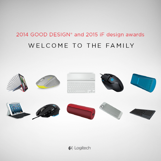로지텍 코리아에 따르면 2014 굿 디자인 어워드에서는 블루투스 스피커 X300, 게이밍 마우스 G502 및 G402, 아이패드 에어와 아이패드 미니용 울트라 씬 키보드 폴리오, 아이패드 에어용 로지텍 울트라 씬, 케이스 플러스, 일루미네이티드 리빙룸 키보드 K830 등 총 7개 제품이 수상했고, 2015년 'iF 디자인 어워드' 수상작으로는 로지텍 애니앵글, 로지텍 무선 마우스 M320 및 UE 메가붐이 선정됐다.