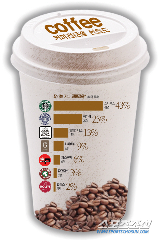 이밖에 카페베네(9명), 파스쿠찌(6명), 탐앤탐스(3명), 할리스(2명)가 그 뒤를 이었다.