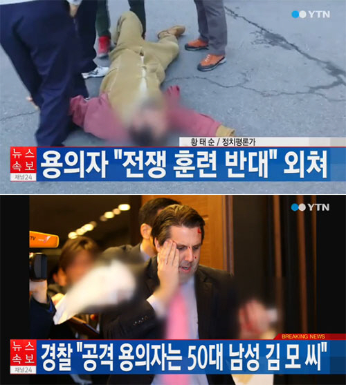 한편 현장에서 다량의 피를 흘린 리퍼트 대사는 현재 강북삼성병원으로 이송돼 치료를 받고 있으며, 생명에는 지장이 없는 것으로 알려졌다.