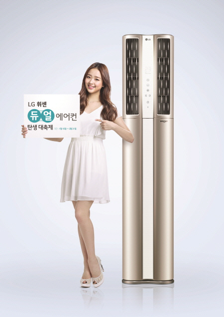 'LG 휘센 듀얼 에어컨'은 LG전자가 에어컨 사업을 시작한 1968년부터 47년 동안 축적된 에어컨 기술이 집약된 혁신 제품이다. '하나의 바디, 두 개의 에어컨' 듀얼 에어컨은 한 대의 에어컨이지만 마치 두 대의 에어컨을 개별 사용하는 효과를 얻을 수 있는 제품이다. 두 대의 에어컨 바람이 독립 제어되어 바람의 방향과 강약을 각각 조절 가능하며, 두 대를 동시 가동할 경우 더욱 강력한 바람을 제공하고 한 대만 가동할 경우 최대 50.3%의 절전효과를 얻을 수 있어 소비자에게 차원이 다른 에어컨 사용 경험을 제공한다.