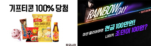 한편 토모나리에서는 레인보우데이 이벤트에서 나이키 에어조단을 100원 경매에 진행하고 이벤트에 참여만 해도 간식 기프티콘을 주는 등 다양한 이벤트를 진행하고 있다. 송진현 기자 jhsong@sportschosun.com