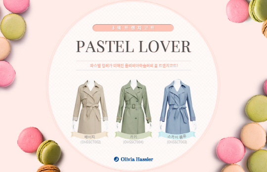 올 봄 패션·뷰티 업계에는 파스텔 컬러가 대세를 이루고 있다. 여성복 쉬즈미스의 '블라썸 트렌치코트', 슈즈브랜드 스코노의 '크리미 러버', 스킨푸드 '네일비타 알파' 등이 따뜻하고 우아한 파스텔 컬러를 전면에 내세웠다.