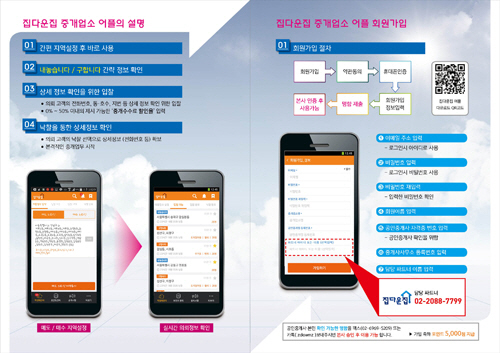 집다운집 서비스를 이용하면 언제 어디서든 스마트폰 하나로 동시에 다수의 중개업소에 중개의뢰가 가능해져 신속한 거래가 이뤄질 수 있으며, 중개업소가 직접 등록한 광고성 매물을 선택 거래하는 것이 아닌 의뢰자 개인이 직접 원하는 매물을 의뢰함으로써 특정 광고성 매물로 인한 불만과 불편이 최소화 된다.