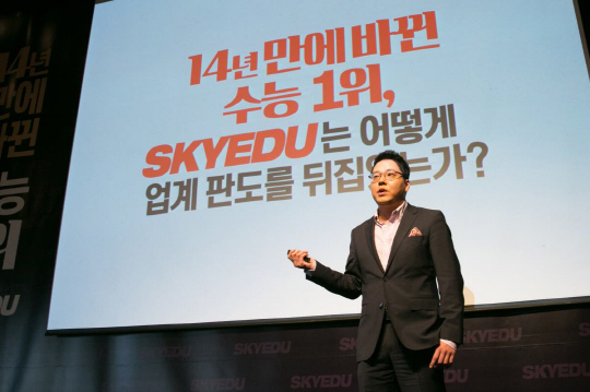 스카이에듀는 10일 서울 소공로 플라자호텔에서 기자회견을 열고 국내 1위를 넘어 글로벌 기업으로 성장하겠다는 목표를 공개했다.