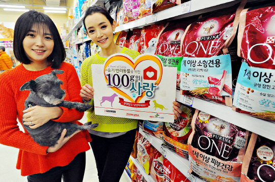 홈플러스가 네슬레 퓨리나 펫케어와 함께 '유기 반려동물을 위한 100g의 사랑' 캠페인을 진행한다.